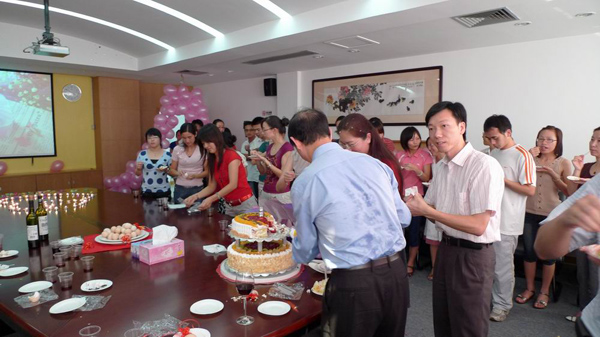 在溫情的八月迎來了華遠(yuǎn)集團(tuán)創(chuàng)始人嚴(yán)文亮先生的生日,華遠(yuǎn)集團(tuán)員工自發(fā)為嚴(yán)總舉辦了一個神秘而又驚喜的生日Party。粉色的氣球、雙心相交的生日蠟燭、醇香的美酒、誘人的蛋糕,點(diǎn)燃了現(xiàn)場的氣氛也傳遞出了參與者的喜悅。在舉杯共慶之時大家道出了自己內(nèi)心最真誠的祝福。8月份過生日的員工,幸運(yùn)地同嚴(yán)總共同分享這份溫馨與快樂,并合影留念。