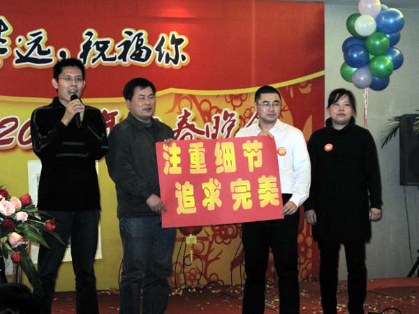 “2010年華遠(yuǎn)集團(tuán)迎春晚會(huì)”于2月5日,在集團(tuán)旗下溫德姆和平國際廈門大酒店成功舉行。集團(tuán)高層領(lǐng)導(dǎo)與全體員工及家屬歡聚一堂共賀新春。氣勢恢弘的大聯(lián)唱拉開了晚會(huì)的序幕,一曲《華遠(yuǎn)祝福你》,唱出了全體華遠(yuǎn)人的心聲。董事長熱情洋溢的發(fā)言,肯定過去、展望未來,為企業(yè)指明了前進(jìn)方向,讓華遠(yuǎn)集團(tuán)全體員工對2010年的新挑戰(zhàn)、新目標(biāo)充滿了希望與期待。工會(huì)主席代表全體員工發(fā)表新年倡議,號(hào)召大家攜手并進(jìn)譜寫新的輝煌。優(yōu)秀表彰、資深員工答謝,對為華遠(yuǎn)做出突出貢獻(xiàn)的員工給予了高度的肯定。集團(tuán)各部門、各分公司精心準(zhǔn)備、異彩紛呈、喜氣洋洋的大拜年,展現(xiàn)出每一位員工對企業(yè)的真誠祝福。整場晚會(huì)氣氛熱烈、高潮迭起,優(yōu)美綺麗、精彩紛呈的各類節(jié)目,不但展現(xiàn)出華遠(yuǎn)人卓越的才藝,同時(shí)還體現(xiàn)了華遠(yuǎn)集團(tuán)強(qiáng)大的團(tuán)隊(duì)凝聚力和良好合作精神。在這樣一個(gè)溫馨和諧、充滿活力的大家庭中,大家團(tuán)結(jié)一致、積極進(jìn)取,讓華遠(yuǎn)之樹根深葉茂,茁壯成長!